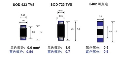 體積:MLV的性能完全由其內部材質決定,因此很難在減小尺寸的同時保持或提高性能,封裝尺寸從0402到1206。而TVS采用矽芯片技術,可以得到比MLV更小的元件封裝尺寸(如圖7所示)。