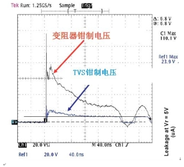 性能:TVS有更低的箝製電壓、更低的漏電以及更快的響應速度(如圖8所示)