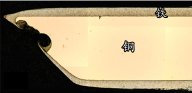 進(jin)行(xing)焊(han)接(jie)時(shi),錫(xi)跟(gen)鐵(tie)會(hui)不(bu)斷(duan)產(chan)生(sheng)混(hun)合(he)反(fan)應(ying),而(er)由(you)於(yu)所(suo)產(chan)生(sheng)的(de)混(hun)合(he)金(jin)屬(shu)會(hui)從(cong)焊(han)咀(ju)鍍(du)層(ceng)表(biao)麵(mian)剝(bo)落(luo),因(yin)此(ci)焊(han)咀(ju)鍍(du)層(ceng)會(hui)逐(zhu)漸(jian)被(bei)侵(qin)蝕(shi)掉(diao),繼(ji)而(er)錫(xi)會(hui)很(hen)快(kuai)速(su)地(di)侵(qin)蝕(shi)焊(han)咀(ju)內(nei)的(de)銅(tong),最(zui)後(hou)會(hui)在(zai)很(hen)短(duan)時(shi)間(jian)內(nei)造(zao)成(cheng)焊(han)咀(ju)穿(chuan)洞(dong)(圖4)。