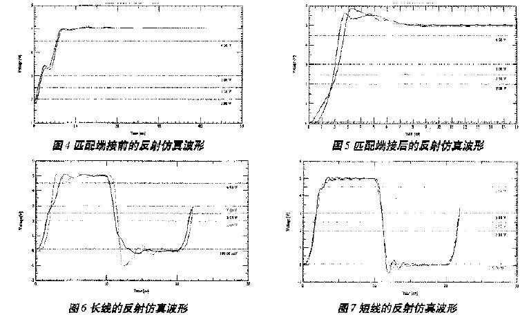 用頻率為50MHz,占空比為0.5的Pulse信號作觸發,圖4和圖5分別為利用Signoise工具仿真得到的匹配端接前、houdefangzhenboxing。congtuzhongkeyikanchu,duanjieqian,boxingzaishangshengyanyoujibianfasheng,rongyiyinqiwucaozuo。pipeiduanjieyouxiaodixiaochulexinhaodejibian,dantiaoxinghenhao,erqiezaishangshengyanlashengleyuanxinhao,tiqianjinrudianpingqiehuan,zengjialexinhaodewentaishijian,xinhaodeshangshengyanyebijiaopingwen。suiranzaigaodianpingdeweichijieduanyoushangguochong,danduixinhaoquerenmeiyouyingxiang,xinhaozhiliangbijiaolixiang。lingwai,xinhaochuanshuxianchangduduifansheyeyouyidingdeyingxiang。fangzhenfaxian,chuanshuxianjiaochangshi,chuxianleyushidefanshexianxiang,rutu6所示;而傳輸線較短時,仿真波形和分析結果吻合得很好,如圖7所示。表1為上述兩種情況下的波形仿真參數。所以,布線長度不同,其處理方法也應不同。一般來說,走線長度小於2英寸,以集總參數的LC電路來處理;大於8英寸,則以分布參數的傳輸線電路來對待。