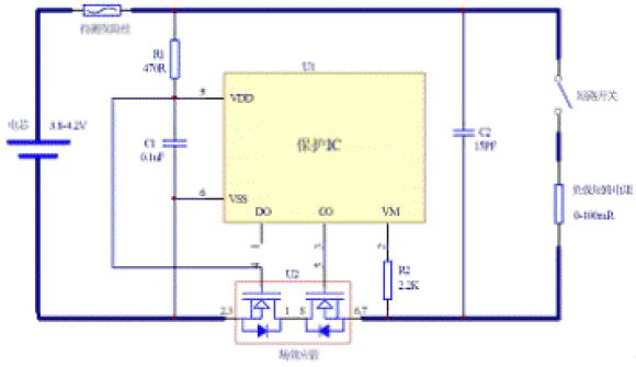 圖1 單節鋰電池保護板電路圖