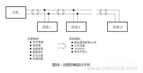 3.過程控製設計舉例為了獲得更多485係統設計知識,一個比較好的方法是看具體的例子。考慮這樣一個係統:係統容量為1個主控製器、數個分站的工廠自動化係統,每個分站都可以發送和接收數據。係統特性如下所示,通用規格見圖10。· 最遠分站距主控製器500米· 31台分站(加上主機共32台設備)· 信號傳輸速率為500 kbit/s