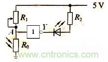 隨著城市化進程的加快發展,城市建設也趨於現代化、人文化、kejihua,chengshidaoluliangpangdeludengyechengleyizuochengshidutedefengjingxian,qizidongkongzhibudanjieshengrenli,haijieyuelenengyuan。rutusuoshishizidongkongzhiludengdeluojidianluyuanlitu,qizhongR0是光敏電阻,光越強烈,光敏電阻R0的阻值越小,R1與R0串聯時所分的電壓就越小,A點輸入低電位,通過非門後,輸出端Y為高電位,所以路燈自動熄滅。光越微弱,光敏電阻R0的阻值越小,R1與R0串聯時所分的電壓就越大,A點輸入高電位,通過非門後,輸出端Y為低電位,所以路燈自動接通。