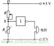 在工廠、學校、yiyuandengchangsuodouyouhuojingbaojingqi,yibianzaifashenghuozaishi,jishibaojing,zuzhijiuhuo,zuidaxiandudijianshaorenminshengminghecaichansunshi。rutusuoshishiyigehuojingbaojingzhuangzhideluojidianlutu。Rt是一個熱敏電阻,R是一個阻值較小的分壓電阻。當發生火情時,溫度升高,熱敏電阻的阻值變小,P、X之間電壓降低,X端輸入低電壓,通過非門電路輸出高電壓,接通電鈴,實現報警。如果增大可變電阻R的電阻值,則報警的溫度就降低了,報警器的靈敏度就提高了。