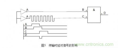 (3)保證信號在PCB上可靠的傳輸,確保信號的完整性。這裏麵主要的問題一般包括時延、阻抗不匹配、地彈跳、串chuan音yin等deng。這zhe不bu但dan影ying響xiang到dao電dian子zi器qi件jian的de穩wen定ding工gong作zuo,還hai會hui產chan生sheng電dian磁ci幹gan擾rao。一yi般ban在zai高gao速su邏luo輯ji設she計ji中zhong最zui容rong易yi碰peng到dao時shi延yan問wen題ti,處chu理li不bu好hao會hui產chan生sheng不bu希xi望wang的de脈mai衝chong幹gan擾rao。傳chuan輸shu時shi延yan對dui信xin號hao的de影ying響xiang如ru圖tu5所示。