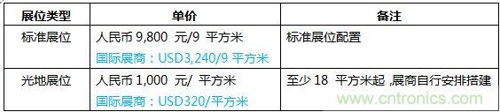 展位類型及價格