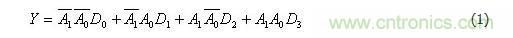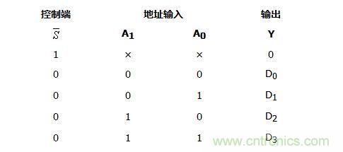由表2可知,具有兩位地址輸入A0、A1的4選1數據選擇器,當使能控製端=0時,輸出與輸入之間的邏輯關係式為