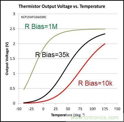 熱敏電阻的缺點是,隻有在很窄的溫度範圍內,它的輸出才是線性和準確的,而在這個範圍之外會變得非線性。圖2繪製了三條熱敏電阻的輸出曲線,偏置電阻分別為1MΩ、35kΩ和10kΩ。在窄溫度範圍內,每條曲線都是線性的,不過在偏置電阻分別為1MΩ、35kΩ和10kΩ,而溫度分別為10ºC、75ºC和50ºCyixiashi,zhesantiaoquxianweifeixianxing。suiranzhenduitedingwendu,keyishiyongzhuanmenxiaozhunderemindianzulaishixianmubiaojingdu,danshizhezhongremindianzuchengbenjiaogao,bingqiezhesankuanbutongdeqijianyeshidekucunguanlibiandeguoyufuza。qitaquedianhaibaokuowufayujideguzhang、抗擾度低和功耗較高。