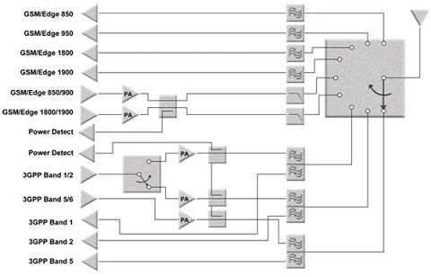 多模多頻段GSM/WCDMA手機的技術要求已經超過了傳統RFIC技術(如GaAs)極限。受這些超高性能要求影響最嚴重的是天線和射頻開關。