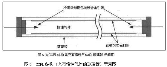 冷陰極熒光燈(CCFL)是一種長而細的密封玻璃管,內充惰性氣體(圖5)。