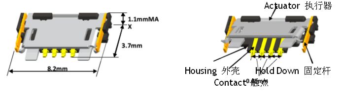 0.2毫米間距,0.9毫米高度FPC 零插入力連接器