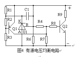圖4電路的缺點是隻能在限幅值以上動作,實現均壓動作,限幅值以下為靜態電流,均壓過程媒體現在整個充電過程,均壓效果受到影響。