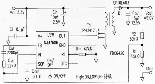 最近廠家生產出了帶負載切斷功能的升壓型變換器IC,使用時采用圖1所示的電路。在待機時借助於P溝道MOSFET Tr2的截止,切斷輸入端和輸出端的直流通路。