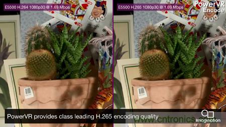 就質量來看,新款Series5編碼器可提供HEVC的所有重要優點,但相較於H264,所需的比特率卻較少。此外,此架構具備先進的搜索算法,其中包含完整的工具集實現與優化編碼速率控製算法,使PowerVR解決方案可以少於其他同類產品30%的比特率達到相同的質量。新款編碼器可支持1080p @ 240fps的高幀率編碼,實現更快的實時轉碼、慢動作錄像和多碼流編碼。新款編碼器的靈活性可為多種特定應用帶來顯著效益: