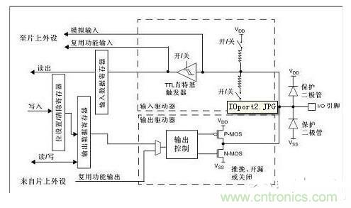 5、作為內置外設的輸出:根據需要配置該引腳為複用推挽輸出或複用開漏輸出,同時使能該引腳對應的所有複用功能模塊。
