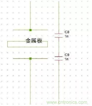 這樣初級的噪聲就可以從金屬板旁路到地。