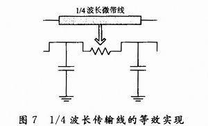 這是一個180°定向耦合器,也稱為rat-race網絡,如圖5所示。物理上可以通過微帶實現,如圖6所示。然而對於第1部分提出的710 MHz天(tian)線(xian),由(you)於(yu)波(bo)長(chang)太(tai)長(chang),這(zhe)樣(yang)的(de)耦(ou)合(he)器(qi)在(zai)移(yi)動(dong)設(she)備(bei)上(shang)無(wu)法(fa)實(shi)現(xian)。為(wei)了(le)實(shi)現(xian)去(qu)耦(ou)合(he),可(ke)以(yi)用(yong)貼(tie)片(pian)電(dian)感(gan)和(he)電(dian)容(rong)做(zuo)出(chu)成(cheng)等(deng)效(xiao)傳(chuan)輸(shu)線(xian),從(cong)而(er)用(yong)電(dian)感(gan)和(he)電(dian)容(rong)做(zuo)成(cheng)一(yi)個(ge)耦(ou)合(he)網(wang)絡(luo),這(zhe)就(jiu)可(ke)以(yi)顯(xian)著(zhe)降(jiang)低(di)耦(ou)合(he)器(qi)占(zhan)用(yong)的(de)體(ti)積(ji)。如(ru)圖(tu)7所示,一個等效1/4波長傳輸線可以用兩個電容和一個電感來等效代替。電容和電感的計算公式為: