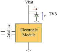 例如,為滿足ISO7637-2標準,特別是圖1中的1、2、3a和3b的脈衝要求,隻使用一個瞬變電壓抑製器(TVS)即可有效保護車載模塊。
