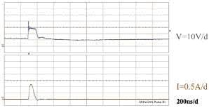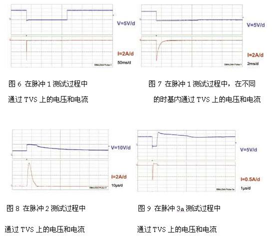 圖10在ISO7637-2脈衝3b測試過程中通過TVS上的電壓和電流