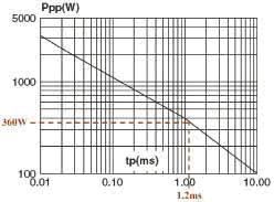 以SMAJ24A為例,從產品數據表摘取這些參數與圖11的曲線進行比較,發現SMAJ24A符合ISO7637-2脈衝2測試的要求,可承受長達1.2ms的360W指數脈衝,這個數值遠遠高於ISO7637-2脈衝2電湧強製的4μs時長。