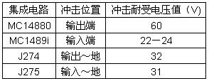 UWshiyongyudiyagongdianxitong,biaozhengleshebeinaishouchongjiguodianyadejueyuanxingneng。danbushiheyutongxinxianlujiqitaweidianziqijian。duitongxinxianluheweidianziqijian,chongjinaishoudianyayudiyaxianludeUw不同,而是與電子電路的抗擾度和工作電壓相關聯,實驗證明衝擊耐受電壓通常為工作電壓Uo的3倍左右。一般對通信線路和微電子電路Up為工作電壓Uo的2.5~3倍。表1所示為某些集成電路的衝擊耐受電壓值。