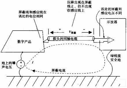 當(dang)傳(chuan)感(gan)線(xian)和(he)屏(ping)蔽(bi)線(xian)都(dou)連(lian)接(jie)到(dao)工(gong)作(zuo)電(dian)路(lu)的(de)地(di)時(shi),兩(liang)條(tiao)線(xian)上(shang)的(de)不(bu)同(tong)壓(ya)降(jiang)會(hui)在(zai)示(shi)波(bo)器(qi)的(de)垂(chui)直(zhi)放(fang)大(da)器(qi)上(shang)反(fan)映(ying)兩(liang)者(zhe)的(de)電(dian)壓(ya)差(cha)。我(wo)們(men)無(wu)從(cong)知(zhi)道(dao)這(zhe)個(ge)電(dian)壓(ya)差(cha)是(shi)由(you)探(tan)頭(tou)電(dian)纜(lan)遠(yuan)端(duan)的(de)實(shi)際(ji)信(xin)號(hao)產(chan)生(sheng)的(de),還(hai)是(shi)由(you)屏(ping)蔽(bi)電(dian)流(liu)產(chan)生(sheng)的(de)。雖(sui)然(ran)我(wo)們(men)希(xi)望(wang)示(shi)波(bo)器(qi)顯(xian)示(shi)無(wu)電(dian)壓(ya),它(ta)可(ke)顯(xian)示(shi)的(de)就(jiu)是(shi)屏(ping)蔽(bi)電(dian)壓(ya)。