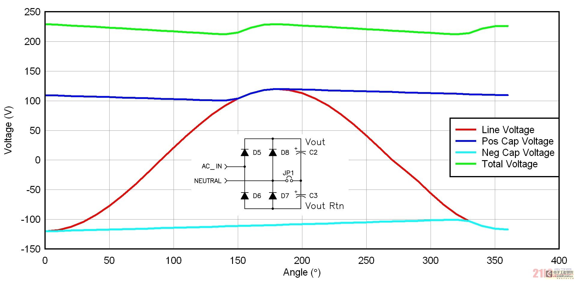 圖 2 描述了一種倍壓器整流配置結構,許多 115/230 VAC 應用都使用了這種結構。如果您有一個 230 VAC 應用,則您的輸入級需要處理最大輸入電壓(265 VAC)乘以峰值因數這麼大的電壓,其接近 400 伏。在與一個 115 VAC 輸入一起使用時,倍壓器將經過整流的電壓,增壓至接近 230 VAC 輸入電平。我們可以專為 230 VAC xianyashejiyigedianyuan,yicilaijianxiaodianyuangongzuodezhengliuhoudianyafanwei。womentongchangshiyongyigetiaoxianhuozhekaiguan,laishixianbutongzhengliuqipeizhizhijiandeqiehuan。zhezhongfangfadeweiyiquedianshiouerchuxianrenweibeizeng 230 VAC 輸入的情況,從而對電源造成嚴重破壞。圖 2 xianshilebeiyaqidianludeyixieboxing。dianrongzhijianbudaidian。lianggezhengliuqijiaotiduimeigedianrongshijiashurudianya。yigezhouqizhong,meigedianrongdoubeichongdianzhifengzhixianya,zheyangtamenmeigedouyouyigexianpinlvwenbobufen。youyudianrongweiyixiangweichongdian,yinciqihedewenbopinlvweixianpinlvdeliangbei。