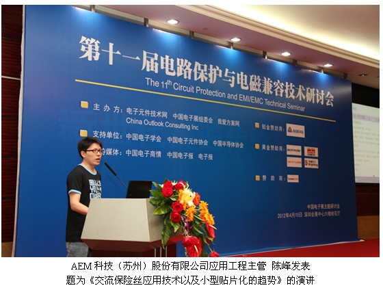 電路保護專業技術與解決方案供應商AEM科技股份有限公司於2012年4月10日出席了由CNT Networks、中國電子展組委會和China Outlook Consulting聯合舉辦的第十一屆電路保護與電磁兼容技術研討會。