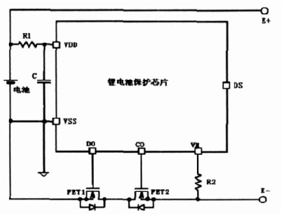 過電流保護:過電流保護包括一級過流保護,二級過流保護,短路保護,當放電電流過大, VM端電壓上升,超過過流檢測電壓,且該狀態持續時間超過過流檢測延遲時間後,控製電路輸出低電平,關斷放電控製用FET1,放電禁止。在放電過程中, VM端電壓就是兩個處於導通態的FET上的壓降(見圖1) ,即VVM = I ×2RFET.式中I是通過FET的電流,即放電電流, RFET是FET的通態電阻。