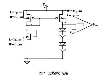 介紹了一種利用串連二極管構成的過熱保護電路的電路結構,工作原理,及參數調節的要點,也簡要提及了版圖的繪製。該過熱保護電路結構簡單、原理清晰、性能可靠,適用於功率集成電路。