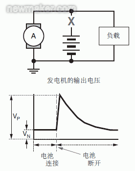 最糟糕的浪湧電壓發生在引擎運轉時電池斷開,交流發電機為汽車電源線提供電流時,這種情況就是所說的“甩負荷”。大多數汽車製造商和工業協會都會為這種甩負荷狀態製定最高電壓、線路阻抗和這種甩負荷狀態的持續時間,如圖5suoshi。shuaifuhededianyuanzukanghuigaoyuzhengchangshuntaiceshishidedianyuanzukang,yinweidianchiduankaierzhiyoufadianjizaixiangwaishuchudianneng,zheshijiaoliufadianjideneibuxianquanxiangdangyuyigexianliudianzu。