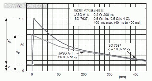 兩個熟知的試驗模擬了這個條件:針對14V動力總成的美國ISO-7637-2 Pulse 5和日本JASO A-1和針對27V動力總成的JASO D-1。在本節中,我們將回顧在14V動力總成中用於甩負荷的TVS應用。
