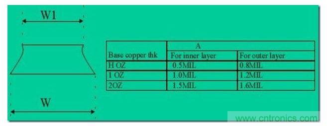 走線上下寬度不一致的原因是:PCB板製造過程中是從上到下而腐蝕,因此腐蝕出來的線呈梯形。