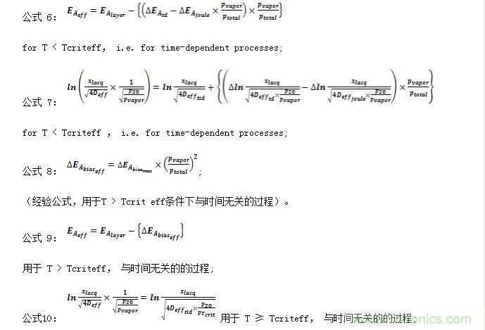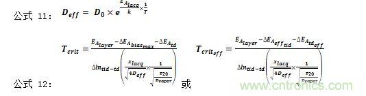 公式11和公式12描述了估算擴散Deff 的係數,以及臨界溫度相關塗漆或塑模係統的Tcrit 或 Tcrit eff。