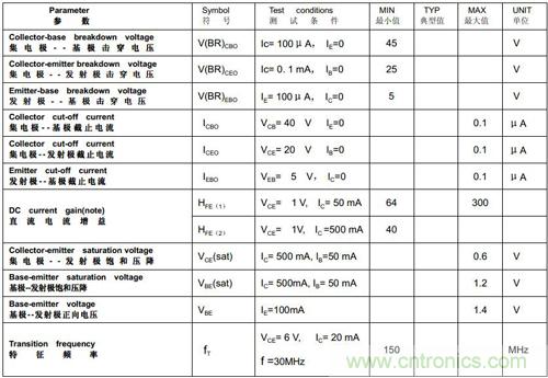 對於9013、9012而言,飽和時Vce小於0.6V,Vbe小於1.2V。下麵是9013的特性表: