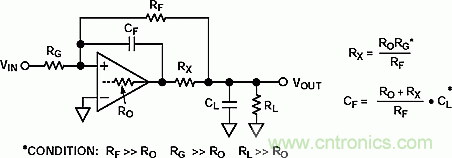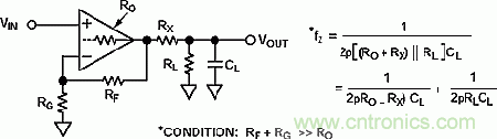 在運放的輸出端和負載電容之間串入一個電阻RX,一般而言它的阻值為10-100歐姆。