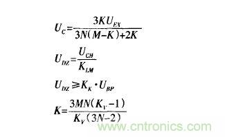 在上圖所提供的定值計算公式中,參數M為單台密集型電容器內部各串聯段並聯的電容器小元件數。參數N為單台密集型電容器內部的串聯段數,參數UEX為電容器組的額定相電壓。參數UCH為開口三角零序電壓。參數UBP為開口三角正常運行不平衡電壓。參數KK為可靠係數,可靠係數大於等於1.5,參數K為因故障切除的同一並聯段中的電容器小元件數。
