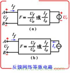 繪反饋網絡的輸入回路時,對電壓反饋,其輸入用恒壓源Uo代替基本放大電路;對電流反饋,用恒流源Io代替基本放大電路,如下圖所示。