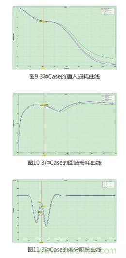 下麵是Case1,Case2,Case3三種情況下AC耦合電容插入損耗,回波損耗以及差分阻抗曲線,分別如圖9,圖10及圖11所示。這裏使用SnpExpert對S參數進行比較。