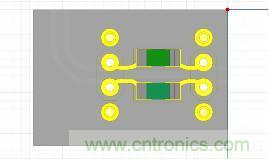 根據上節3種Case情況下的仿真結果和PCB設計的實際情況,AC耦合電容隻掏空GND02層,掏空尺寸為X方向掏34mil,Y方向掏66mil。因為ViaExpert可以直接導入Brd文件,所以在PCB設計完成後在ViaExpert裏麵直接對Brd進行解析,提取出板上的AC耦合電容和出線。PCB實際AC耦合電容的設計以及導入到ViaExpert中提取完成的3D效果圖分別如圖12和圖13所示。
