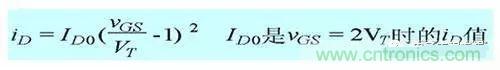(5) 低頻跨導 gm :表示VGS對iD的控製作用。