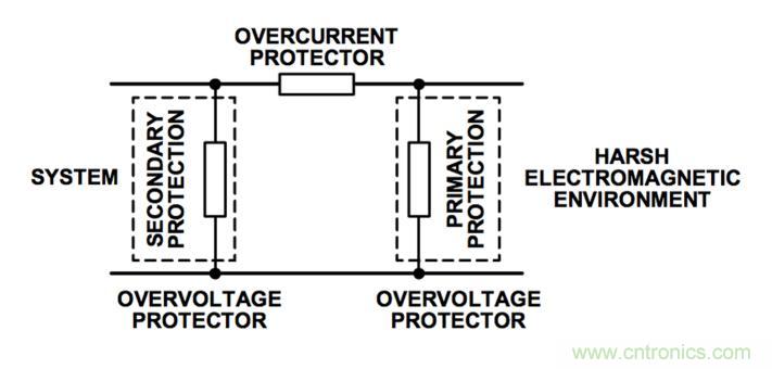 所有上述三個元件協同工作,與係統輸入/輸出配 合,一起針對高電壓大電流瞬變為係統提供係統級保護。