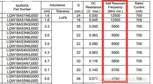 C0G/NP0類的低損耗電容和高Q值RF繞線電感datasheet中(zhong)一(yi)般(ban)都(dou)會(hui)主(zhu)動(dong)標(biao)出(chu)自(zi)諧(xie)振(zhen)頻(pin)率(lv)的(de)具(ju)體(ti)值(zhi)和(he)測(ce)試(shi)方(fang)法(fa)。簡(jian)單(dan)地(di)說(shuo),電(dian)容(rong)在(zai)低(di)於(yu)自(zi)諧(xie)振(zhen)頻(pin)率(lv)的(de)區(qu)間(jian)內(nei)才(cai)有(you)作(zuo)為(wei)容(rong)性(xing)元(yuan)件(jian)的(de)利(li)用(yong)價(jia)值(zhi),電(dian)感(gan)在(zai)自(zi)諧(xie)振(zhen)頻(pin)率(lv)內(nei)才(cai)有(you)作(zuo)為(wei)電(dian)感(gan)的(de)利(li)用(yong)價(jia)值(zhi)。