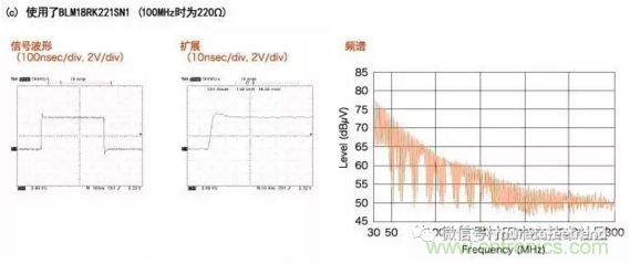 BLM18R不僅能顯著抑製100MHz以上頻帶的頻譜電平,還能抑製波形失真。