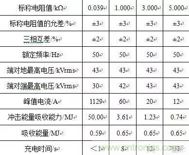 因此規定當充電時,功率單元驅動電路的工作電壓從零上升到額定值得時間不小於0.5s,整體充電時間控製在10s左右。基於這個限製條件並結合表2,本工程充電電阻可選擇3000,650kJ。