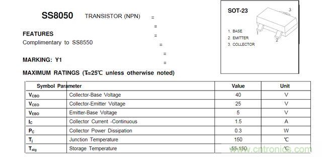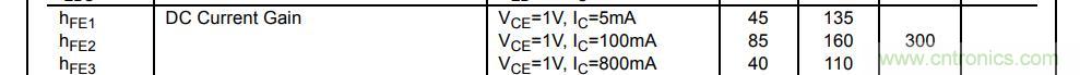 最大耐壓Vceo=25V,足夠應用於5V供電係統中;最大集電極電流Ic=1.5A,足夠我們的LED燈使用。