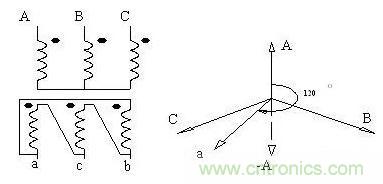 自耦變壓器有公共部分的兩繞組中額定電壓低的一個用符號a表示。變壓器按高壓、低壓繞組聯結的順序組合起來就是繞組的聯結組。
