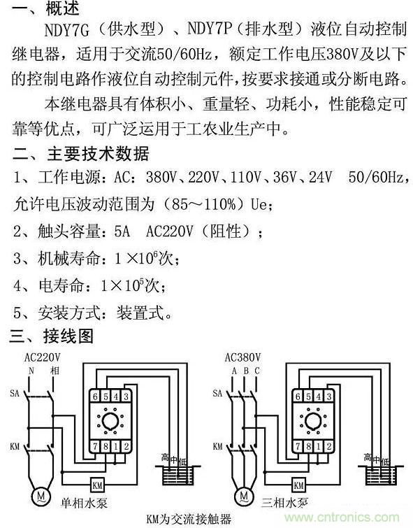 【導讀】液位繼電器是(shi)控(kong)製(zhi)液(ye)麵(mian)的(de)繼(ji)電(dian)器(qi)。這(zhe)是(shi)一(yi)個(ge)繼(ji)電(dian)器(qi)內(nei)部(bu)有(you)電(dian)子(zi)線(xian)路(lu),利(li)用(yong)液(ye)體(ti)的(de)導(dao)電(dian)性(xing)。當(dang)液(ye)麵(mian)達(da)到(dao)一(yi)定(ding)高(gao)度(du)時(shi)繼(ji)電(dian)器(qi)就(jiu)會(hui)動(dong)作(zuo)切(qie)斷(duan)電(dian)源(yuan)。液(ye)麵(mian)低(di)於(yu)一(yi)定(ding)位(wei)置(zhi)時(shi)接(jie)通(tong)電(dian)源(yuan)使(shi)水(shui)泵(beng)工(gong)作(zuo)。達(da)到(dao)自(zi)動(dong)控(kong)製(zhi)的(de)作(zuo)用(yong)。