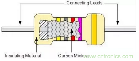 碳tan合he成cheng電dian阻zu主zhu要yao是shi由you碳tan粉fen末mo和he粘zhan合he劑ji一yi起qi燒shao結jie成cheng圓yuan柱zhu型xing的de電dian阻zu體ti,其qi中zhong碳tan粉fen末mo的de濃nong度du決jue定ding了le電dian阻zu值zhi的de大da小xiao,在zai兩liang端duan加jia鍍du錫xi銅tong引yin線xian,最zui後hou封feng裝zhuang成cheng型xing。碳tan合he成cheng電dian阻zu工gong藝yi簡jian單dan,原yuan材cai料liao也ye容rong易yi獲huo得de,所suo以yi價jia格ge最zui便bian宜yi。但dan是shi碳tan合he成cheng電dian阻zu的de性xing能neng不bu太tai好hao,容rong差cha比bi較jiao大da(也就是做不了精密電阻),溫度特性不好,通常噪聲比較大。碳合成電阻耐壓性能較好,由於內部是可以看作是碳棒,基本不會被擊穿導致被燒毀。
