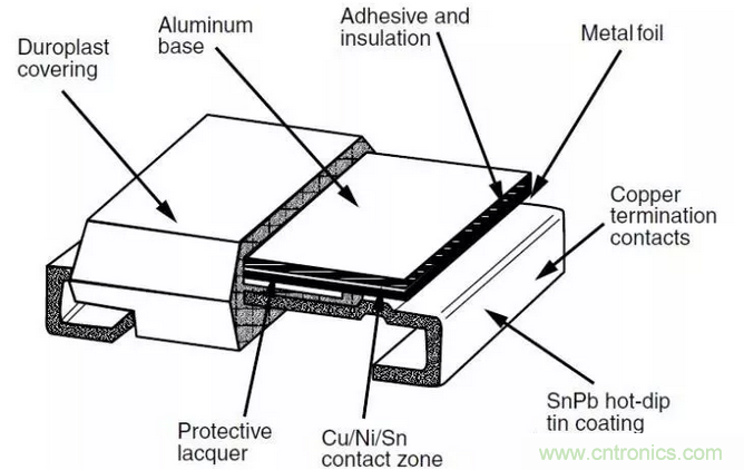 將氧化鋅陶瓷采用和MLCC類似的工藝製作成多層型壓敏電阻,即 MLV。MLV封裝較小,通常是片狀的,額定電壓和通流能力都比MOV小很多,適用於低壓直流場合。